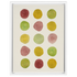 An array of softly painted circles, each revealing its unique texture of watercolor wash, forms a serene grid that entices closer observation. The gentle transition between earthy reds, muted greens, and soft yellows creates a subtle arrangement across the composition. This colorful work enhances any space, imparting a peaceful, nurturing atmosphere, where each hue suggests its own quiet narrative. The simple, structured alignment of the elements fosters a meditative approach, inspiring viewers to explore the calming repetitions and gentle nuances. Ultimately, this piece offers a soothing escape from chaos, allowing a reflective moment to appreciate the tranquility of its design.