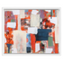 Bold geometric forms overlay a lively composition, creating structural complexity. The contrast of vivid reds and cool blues engages with the softer, muted whites and greens. This arrangement suggests a conversation on modern life's fragmentation, inviting viewers to consider the intersection of chaos and order. Textured brushstrokes and layered patterns add richness, promoting exploration of the artwork’s inner workings. The influence of abstract expressionism manifests in the spontaneous movement of color and form. How does this array of forms and colors challenge perceptions of balance and unity?
