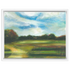 A radiant blend of subtle hues meets ambitious brushstrokes, bringing forth a feeling of peace and nostalgia in this serene landscape. The expansive greens, punctuated by sporadic dashes of autumnal reds, feels almost reminiscent of the tranquility found in a quiet countryside. The technique, employing a fluid combination of muted colors and soft textures, challenges conventional landscape portrayals, offering instead an introspective exploration of nature’s calmest moments. As clouds drift lazily across a pale blue sky, they transform this scene into a meditative space, inviting viewers to lose themselves in its quiet beauty. This piece exemplifies decorative art, enriching the atmosphere of any room with its soothing presence.