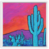 In "Desert Weeds," the intricate detail of the foreground foliage, cast in shadow, reveals a stunning array of blues and purples, offering a subtle contrast to the vibrant neon sunset behind the purple mountains. The artist's use of color tells a compelling story of the desert at dusk, where the intense heat of the day begins to fade as the sun slips behind the hills. The visual experience is rich and immersive, drawing the viewer into the scene where the warmth of the sunset gradually gives way to the cooling shadows of the evening, creating a palpable sense of calm and relief.